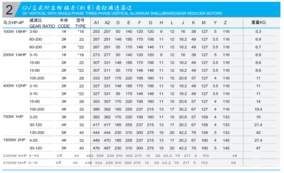 GV立式附三相铝壳(刹车)齿轮减速马达